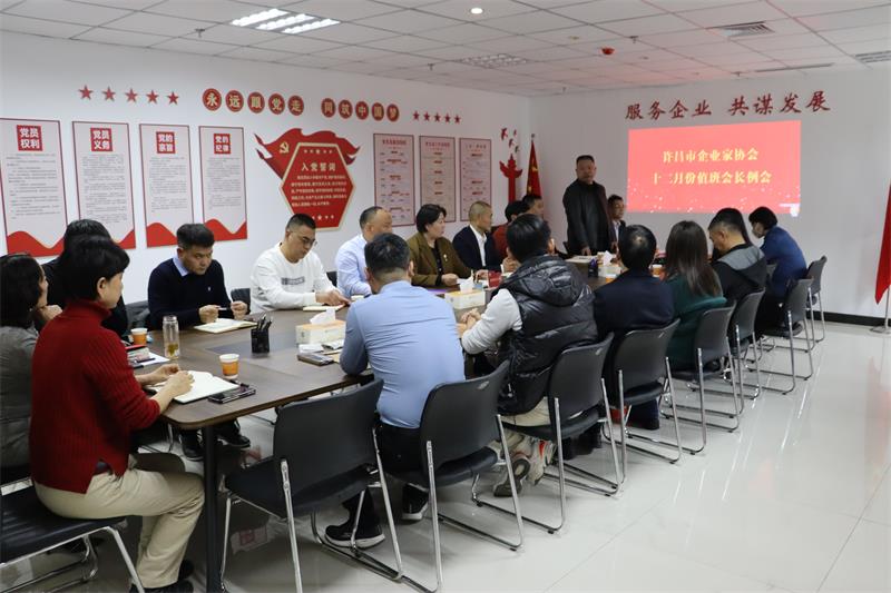 12月5日下午,許昌市企業(yè)家協(xié)會(huì)十二月份輪值會(huì)長工作交接會(huì)在協(xié)會(huì)會(huì)議室召開,會(huì)議由十二月份值班會(huì)長、許昌漢魏餐飲管理有限公司總經(jīng)理范文彥主持。