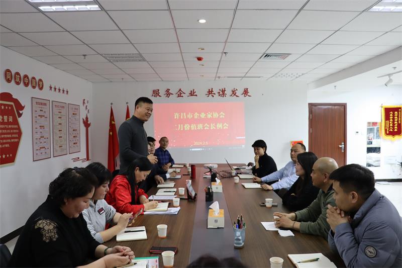 2月5日晚上,許昌市企業(yè)家協(xié)會二月份輪值會長工作交接會在許昌市企業(yè)家協(xié)會會議室召開,會議由二月份值班會長、河南湖雪食品有限公司總經理張建濤主持。